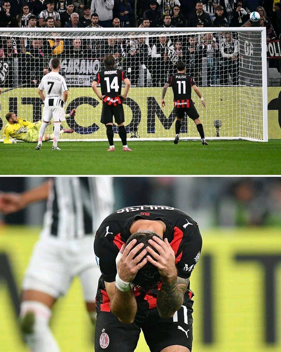 如果说希门尼斯的失误略带喜感,那么米兰获得的点球机会则更让人扼腕叹息。在裁判判罚尤文犯规后,米兰获得点球。本赛季表现极其稳定的普利西奇,却鬼使神差地选择了一记推射右上角的脚弓方式。皮球最终偏离球门,普利西奇懊恼地捂住了脸,队友们也纷纷露出难以置信的表情。要知道,在此之前,普利西奇就曾有过一次颇为滑稽的“拌蒜”,状态之差可见一斑。