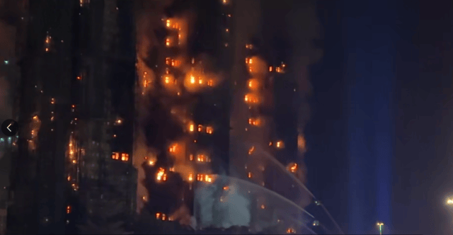 11月26日,香港大埔宏福苑发生五级火警,消防接报后迅速到场,出动搜救队扑救。