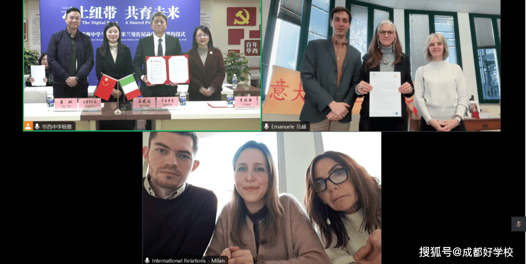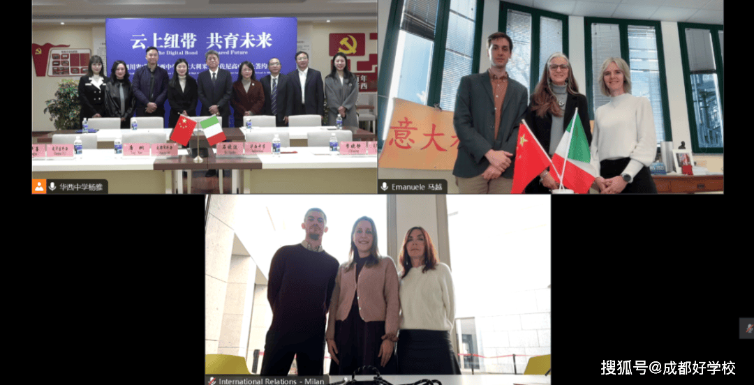 意大利米兰市政府国际关系部、成都市政府外办、成华区委外事办、成华区教育局及两校师生代表在线共同见证,携手开启教育合作新篇章。